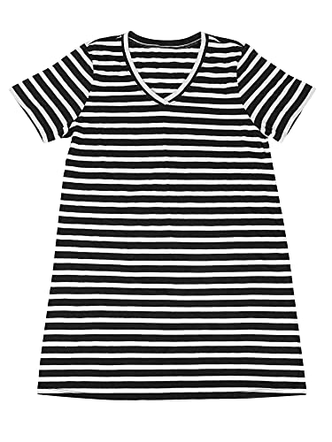 Yukiuiny Natttröjor för dam bomull spets nattklänning kort T-shirt nattlinne pyjamas casual V-hals sexig moderskap amning topp bekväm, Randig grå 2, L
