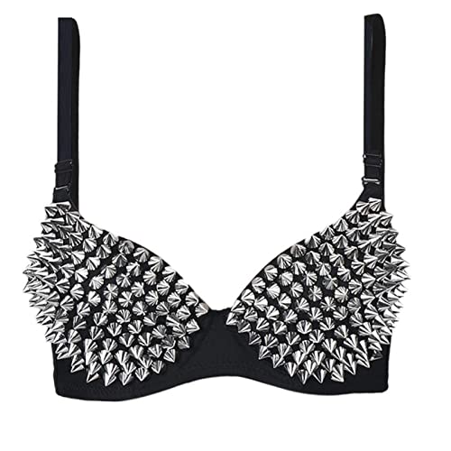 Sexiga BH:ar Dam Fest All-over Spike Rivet Metallisk Punk Dans Push Up BH Nattklubbskostymer BH:ar Bralette (Color : Black, Size : 34)