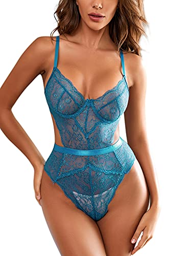 EVELIFE Bodysuit för kvinnor, sexiga underkläder, bh med bygel, overall, sexiga underkläder, negligé, spets, underkläder, babydoll, underkläder, Marinblå, S