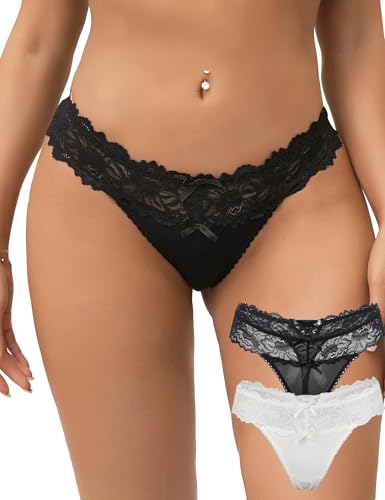 ohmydear String tanga damer sexiga underkläder för kvinnor 1/2/3-pack kalsonger spets trosor brasilianska trosor stora storlekar underkläder för kvinnor, 3-pack svart + vit + rosa, XS-S