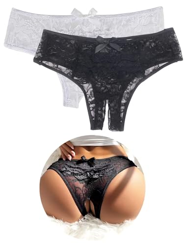 ohmydear String tanga damer sexiga underkläder för kvinnor 1/2/3-pack kalsonger spets trosor brasilianska trosor stora storlekar underkläder för kvinnor, svart, XS-S