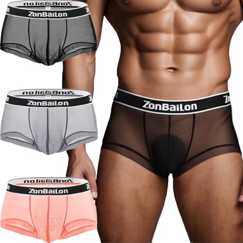 ZAIGELUO Genomskinliga boxershorts för män, sexiga underkläder, nätboxer, ventilerande kalsonger, hipster, retroshorts, Svart-grå-orange, M