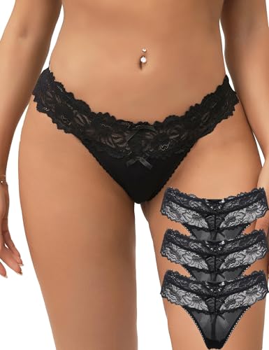 ohmydear String tanga damer sexiga underkläder för kvinnor 1/2/3-pack kalsonger spets trosor brasilianska trosor stora storlekar underkläder för kvinnor, 3-pack svart, XS-S