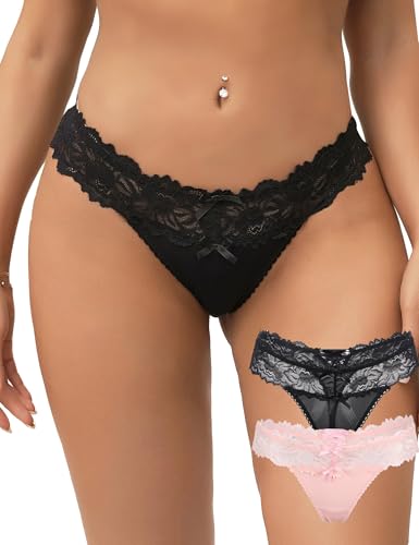ohmydear String tanga damer sexiga underkläder för kvinnor 1/2/3-pack kalsonger spets trosor brasilianska trosor stora storlekar underkläder för kvinnor, 2-pack svart + rosa, XS-S