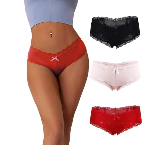 ohmydear String tanga damer sexiga underkläder för kvinnor 1/2/3-pack kalsonger spets trosor brasilianska trosor stora storlekar underkläder för kvinnor, röd, XL-XXL