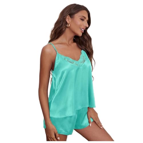 Satin Pyjamasset for kvinnor 2 st Soft Sling justerbar axelremsväst Shorts Sovkläder Sexiga Pjs Set(Turquoise,L)