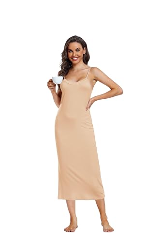 Sopesil Damunderklänning långa sexiga underkläder med remmar underkjolar underkjol knälängd underkjol Cami nattlinne kvinnor sovkläder, Beige, S