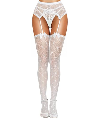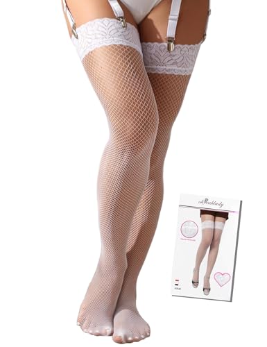 ohyeahlady Fisknätstrumpor i stor storlek för dam strumpebandshållare sexiga självfixerande strumpor strumpebandshållare strumpbyxor strumpebandshållare outfit heta sexiga underkläder spets, Vitt och