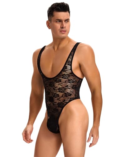 ohmydear Bodysuit för män i nät förförisk het sissy sexiga underkläder herr ärmlös bodystocking herr sexiga kläder utan rygg stor storlek, Svart, M