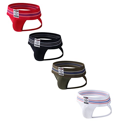 JOCKMAIL 4 st./pack sexiga herrkalsonger herr atletisk suspensoar underkläder trosor atletisk stöd, Röd+svart+ag+vit, XXL