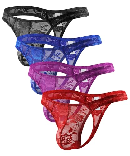 Casey Kevin Stringtrosa herr spets sexiga underkläder stringtrosa transparent, B1-flerfärgad (4-pack), L