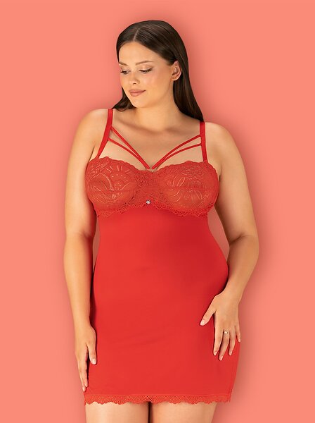 Obsessive Loventy Chemise & Thong Röd 2XL/3XL