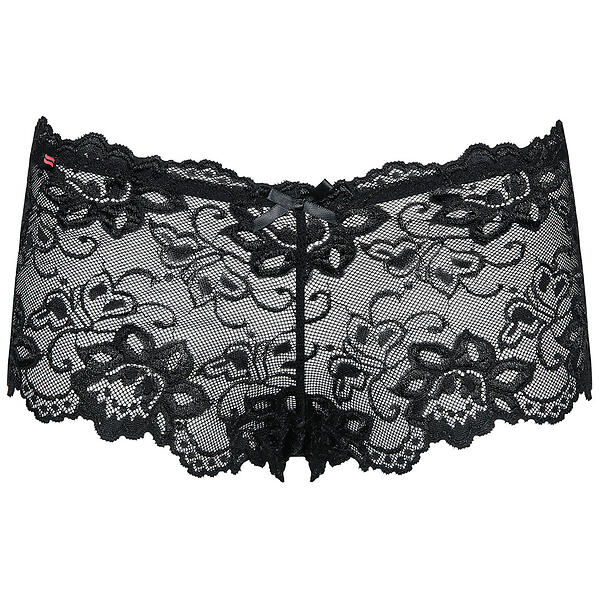 René Rofé Lingerie Crotchless Lace Side-Tie Boyleg Sexiga Hipster Trosor med Rosetter och Öppen Gren (Storlek: S/M)