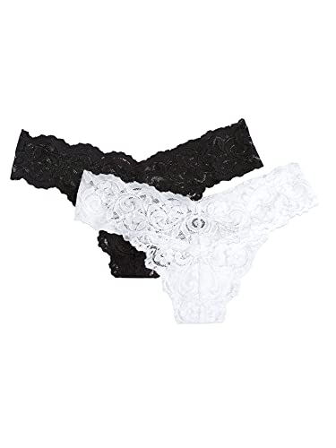 Smart & Sexy Women's Signature Lace Thong Panty 2 Pack, Black Hue/White, 7