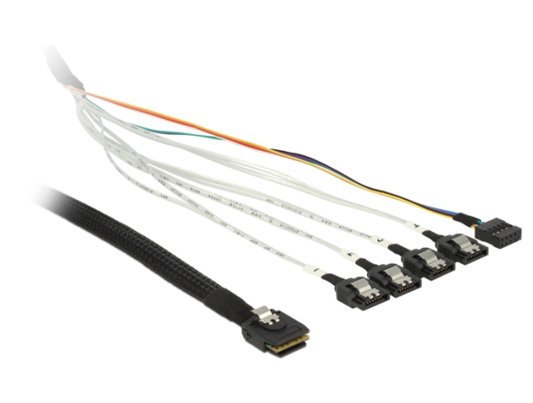 Delock - Sata/Sas-Kabel - Sas 6Gbit/S - Mini-Sas (Sff-8087) Till Sata, Sidoband - 1 M