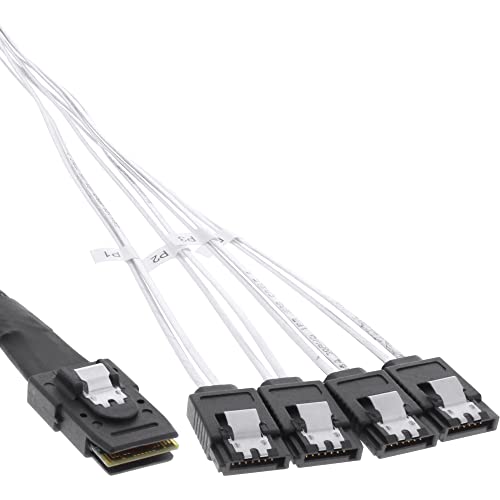 InLine 27620B SAS anslutningskabel Mini-SAS SFF-8087 till 4 x SATA, 1:1, OCR, 1 m