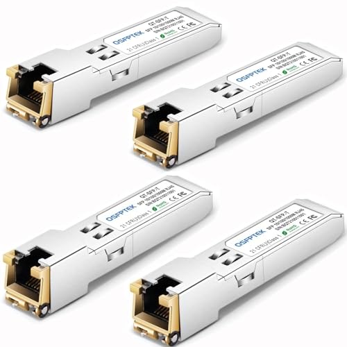 QSFPTEK 4-pack Gigabit 1G SFP-T RJ45 kopparmodul, 10/100/1000BASE-T SFP till RJ45-modul 1G SFP-T Mini-Gbic sändtagare för Cisco GLC-T/GLC-TE/SFP-GE-T, Mikrotik S-RJ01, Netgear, upp till 100 m