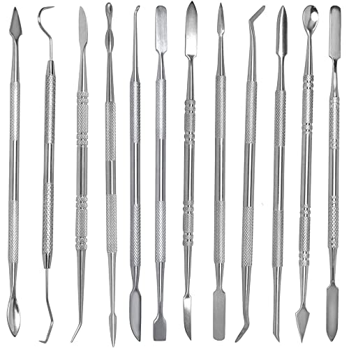 MMOBIEL 12 st vaxsnideriset i rostfritt stål, vaxsnidare, mejselverktyg, dubbel-ändad polymerärr, SFX makeup, lerverktyg, fruktsnideri – pumpa – melonsnideri – tandverktyg
