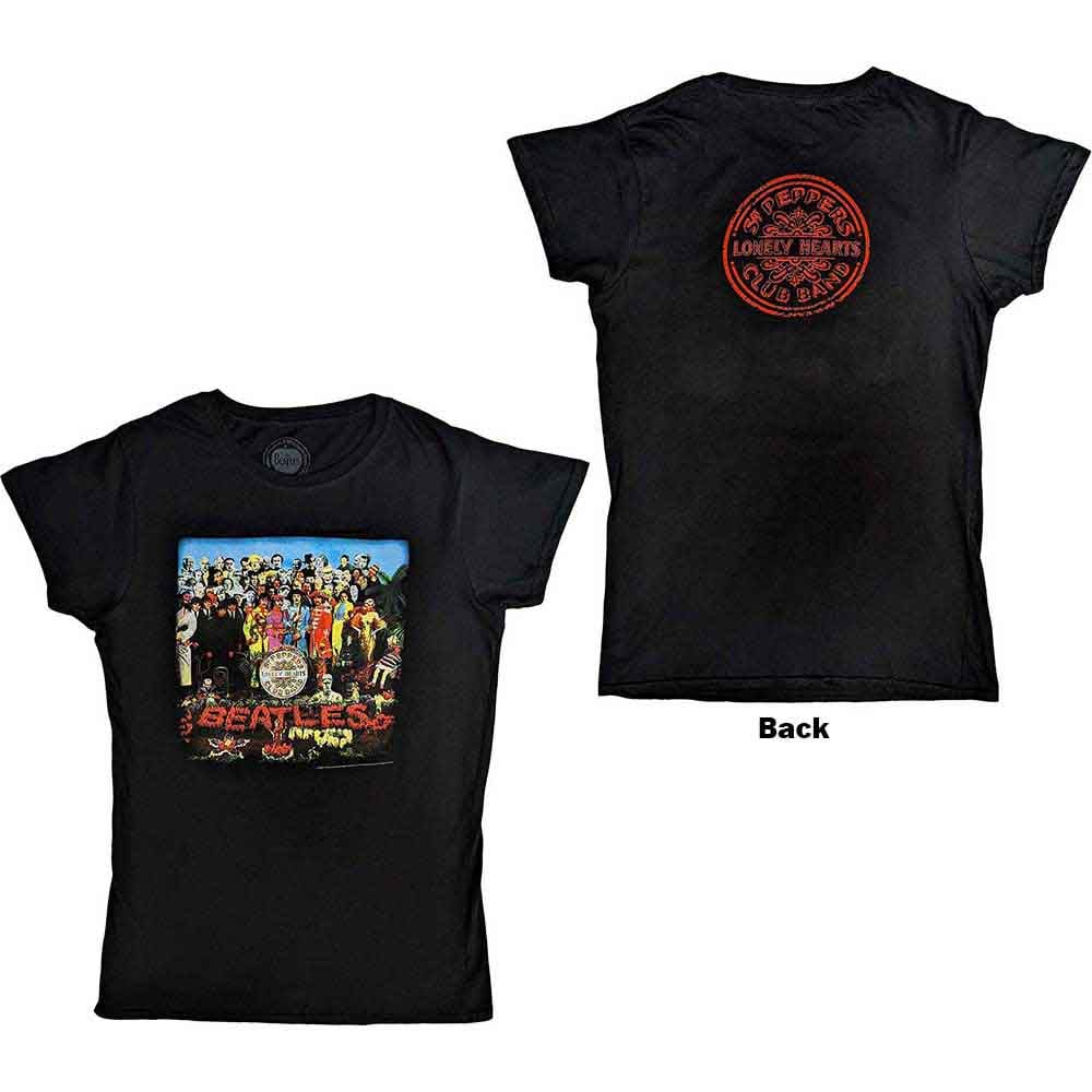 The Beatles: Ladies T-Shirt/Vintage Sgt Pepper (Black) (Back Print) (Small)