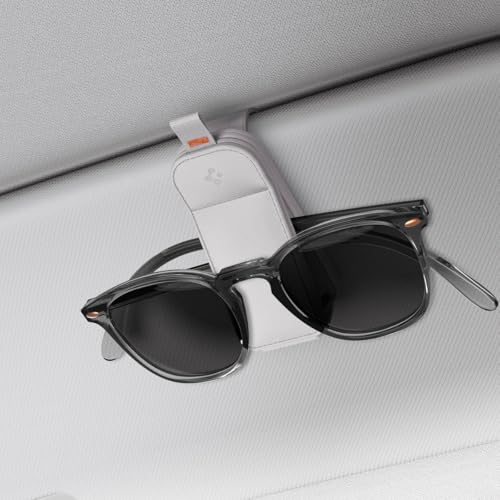 Spigen Magnetisk solglasögonhållare i veganskt läder för bilens solskydd, klämma för glasögon, solglasögon, biljetter och kort, tillbehör för bilens solskydd, 2-pack (grå)