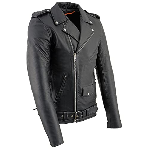 Milwaukee Klassisk sidospets i läder för män, polisstil, motorcykeljacka (SH1011-XL-svart)