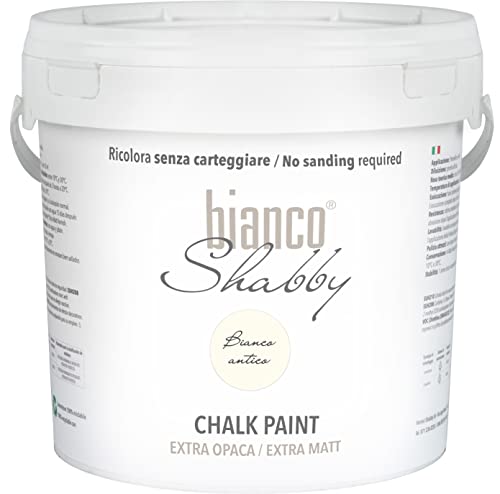 bianco Shabby® Chalk Paint Bianco Antico kritfärg för möbler och väggar vintage effekt shabby chic, extra matt (5 liter)