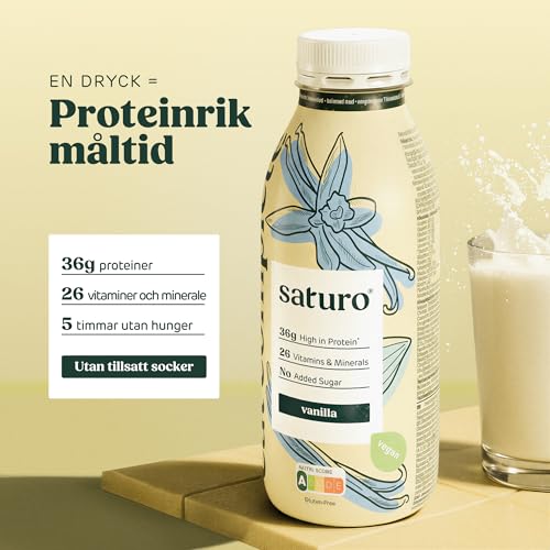 Saturo Måltidsersättning Shake Vanilj | Astronautmat med protein och 330 kcal | Drickbar mat med värdefulla näringsämnen | 8 x 330 ml