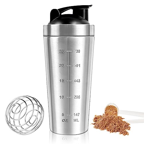 Gobesty Proteinskakare flaska 750 ml, rostfritt stål proteinshaker kopp, gym shaker-flaska, proteinblandare shaker kostflaska med mixball, läckagesäker metall sportvattenflaska för män och kvinnor