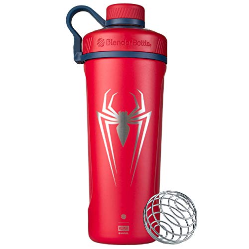 BlenderBottle Marvel Radian Shaker kopp isolerad rostfritt stål vattenflaska med trådvisp, 2,5 uns, Spider-Man Spider