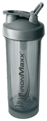 IronMaxx Premium Shaker – Ash Grey 700 ml | Proteinshaker med filterkula och gradering skala | AS+PP lufttät flaska i plast | För krämiga shakes var du än är