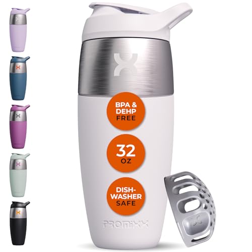 Promixx PURSUIT Protein Shaker-flaska ny utgåva – premiumsportflaskor för proteinblandningar och tillskottsskakningar – lätt att rengöra, hållbar proteinshaker kopp, 700 ml, keramisk vit