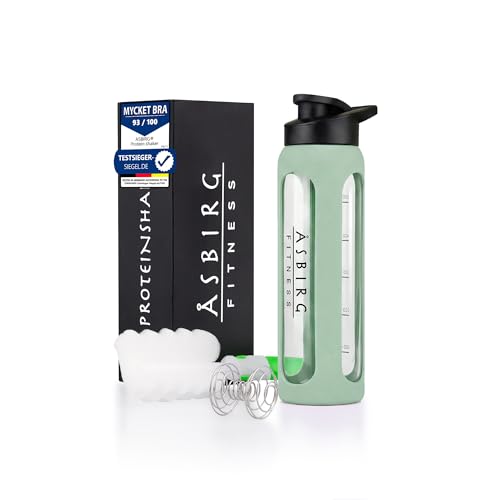 Asbirg Proteinshejkare i Glas 700 ml – BPA-fri, Läckagesäker & Robust – Shaker för Protein med Spiralboll i Borosilikatglas – Dricksflaska för Träning & Sport | Pastellgrön
