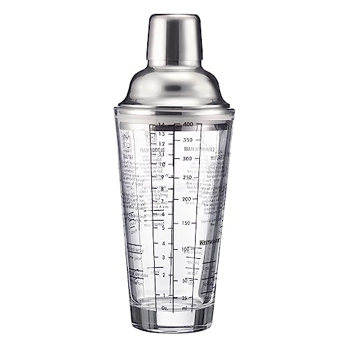 Westmark Cocktailshaker Sam – shaker med skala och sil, professionell cocktailblandare, bartillbehör, inkl. recept för att blanda Margarita och mer – rostfritt stål, glas, 400 ml