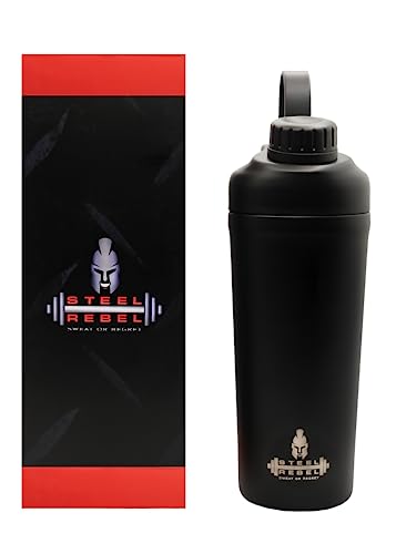 Steel Rebel – Protein dubbelväggig isolerad shaker rostfritt stål med högkvalitativ pulverbeläggning – perfekt för sport, fitness och hemträning – 600 ml BPA-fri