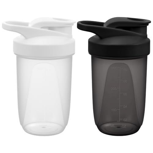 Alaoo Proteinshaker-flaska, 2 st shaker-proteinskakningar med metallomrörningsboll, sport gym tillskott proteinskakningsflaska för blandning av proteinshakes och kosttillskott, 400 ml, svart och vitt