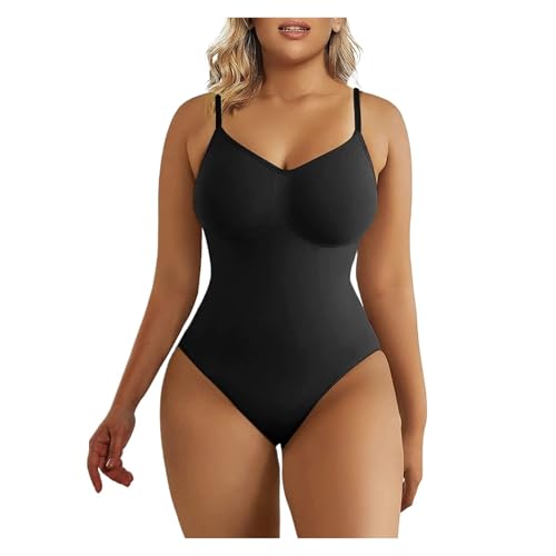 Vijamiy Formande Body Kvinnor Smal Shapewear Bodysuit Platt Mage Justerbar Axelrem Andningsaktiv och Bekväm Body String, Svart, S