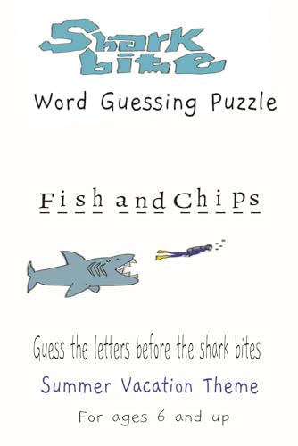 Shark bite Word Guessing Puzzle: Guess the word before the bite [6" x 9" inches] Compact size, carry anywhere. 61 puzzles in a new fun format for word game lovers.