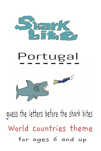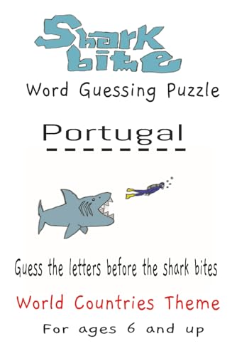 Shark bite: word guessing game like hangman, world countries theme, 61 puzzles [6 x9] inches 122 pages total, Solutions written on the back , perfect gift to pass the time