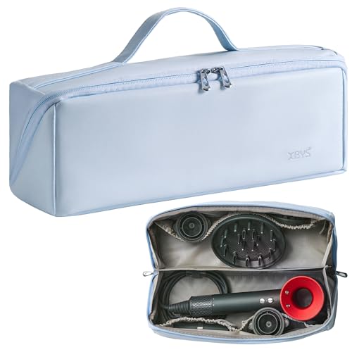 Veki Bärbar Resförvaringsväska Kompatibel med Dyson Supersonic Hårtork, PU-läder Resväska för Shark Flexstyle/Dyson Airwrap, Resorganiserare för Locktång och Hårtorkstillbehör (Blå)