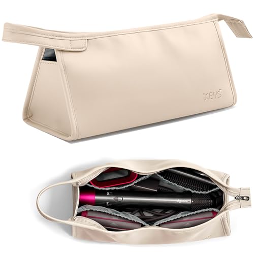 Veki PU-läder Hårfönsförvaringspåse, Vattentät Hårverktygspåse, Hårtork Förvaringsväska, Passar Dyson Airwrap Styler & Shark Flexstyle, Bärväska Bärbar för Resor och Hembruk (Off-white, M)
