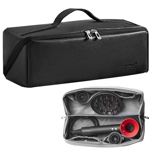 Veki Bärbar Resförvaringsväska Kompatibel med Dyson Supersonic Hårtork, PU-läder Resväska för Shark Flexstyle/Dyson Airwrap, Resorganiserare för Locktång och Hårtorkstillbehör (Svart)