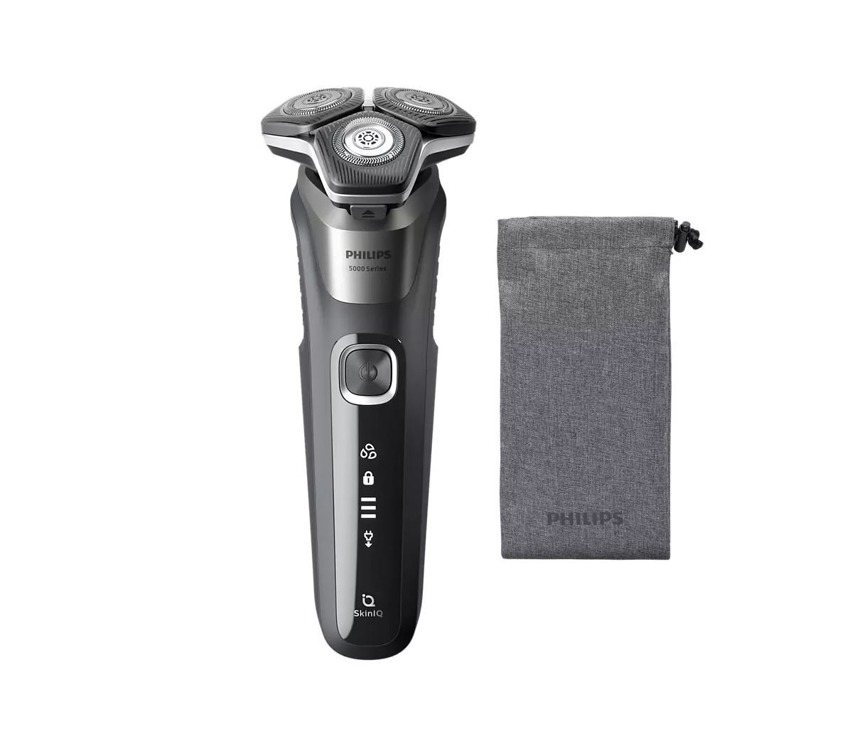Philips Shaver Series 5000 - Elektrisk rakapparat för våt- och torrakning med SkinIQ-teknik, uppfällbar trimmer, resefodral, Quick Clean Pod och Quick Clean-patron (modell S5898/50)