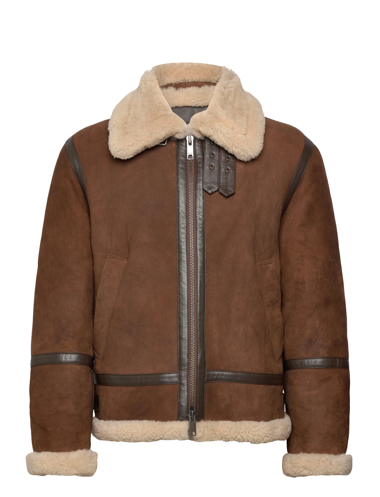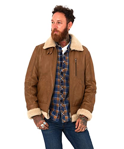 Joe Browns Herr herr brun läder Shearling Aviator jacka brun, SOLBRÄNNA, XL