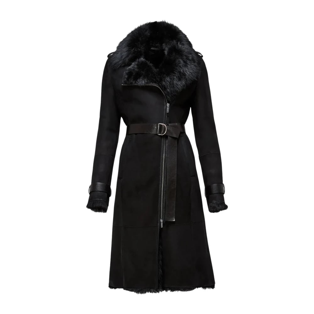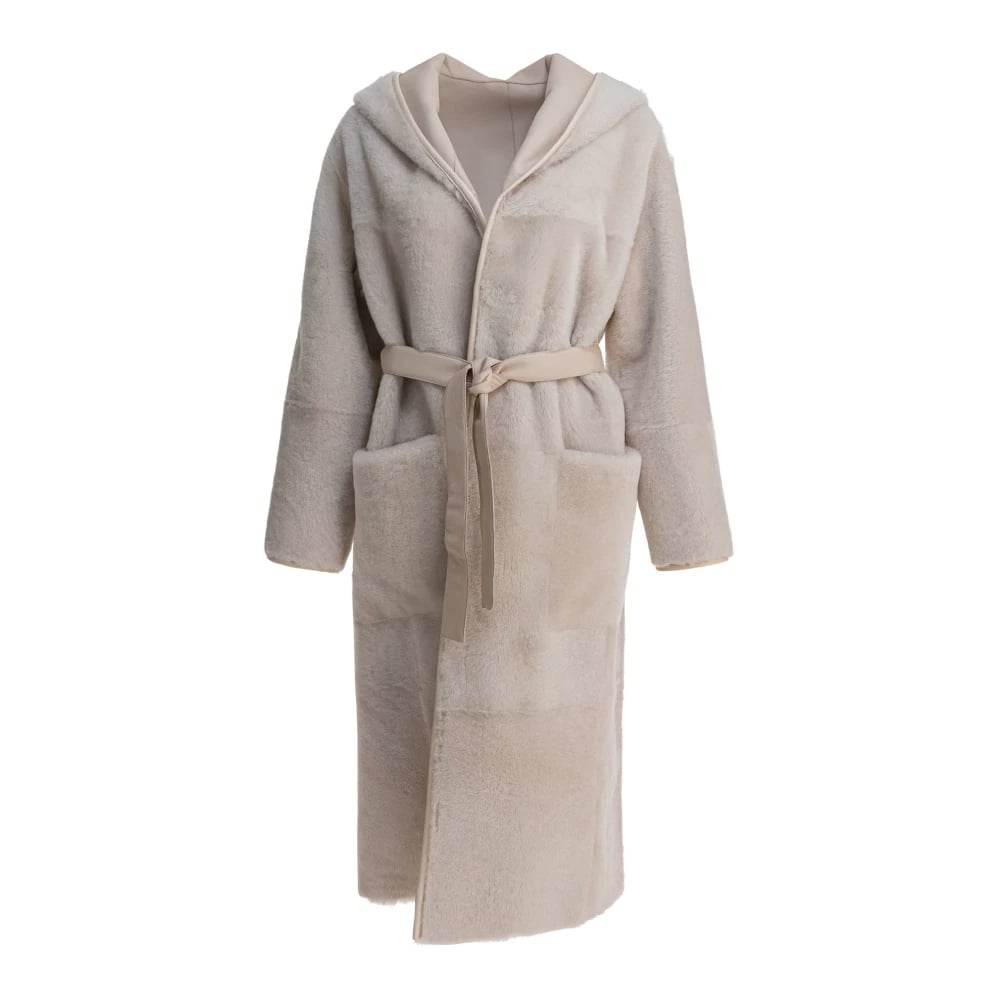 Cesare Gaspari, Kappor & Rockar , Dam, S, Bältad lång kappa med krage i shearling