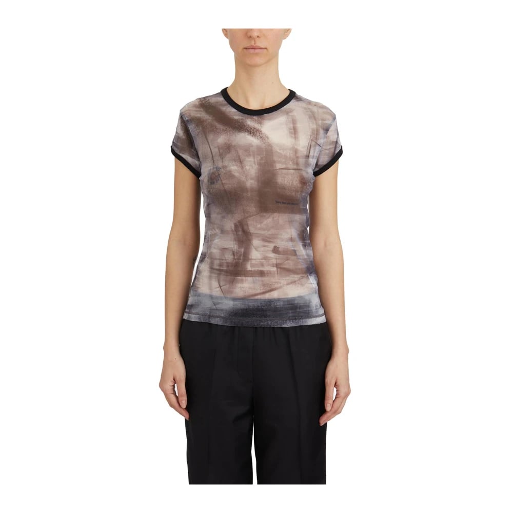 Helmut Lang, Toppar , Dam, S, Sheer Abstrakt Mönstrad T-shirt