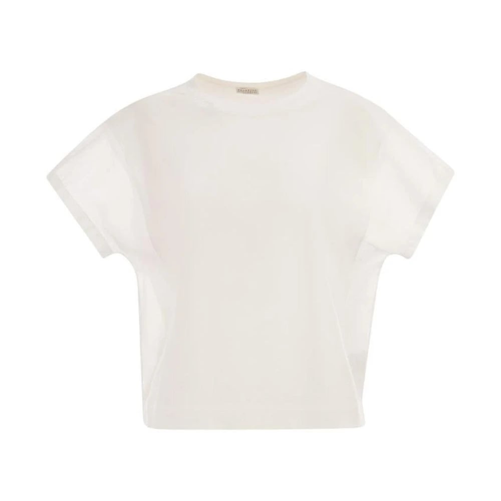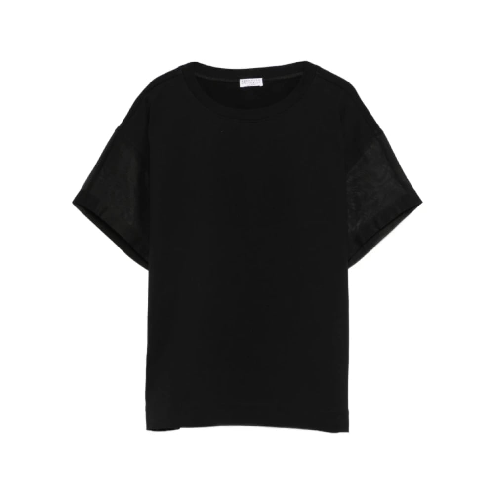 Brunello Cucinelli, Toppar , Dam, XS, Bomull, Semi-Sheer Panel Rundhals T-shirt