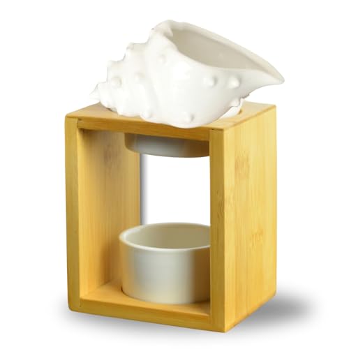Brûle Parfum Shell - Doftande vax fondantbrännare - diffusor eterisk olja och stämningsdoft - aromaterapi ljusstake i trä och keramik dekorativ - höjd: 12 cm - Zen'Arôme