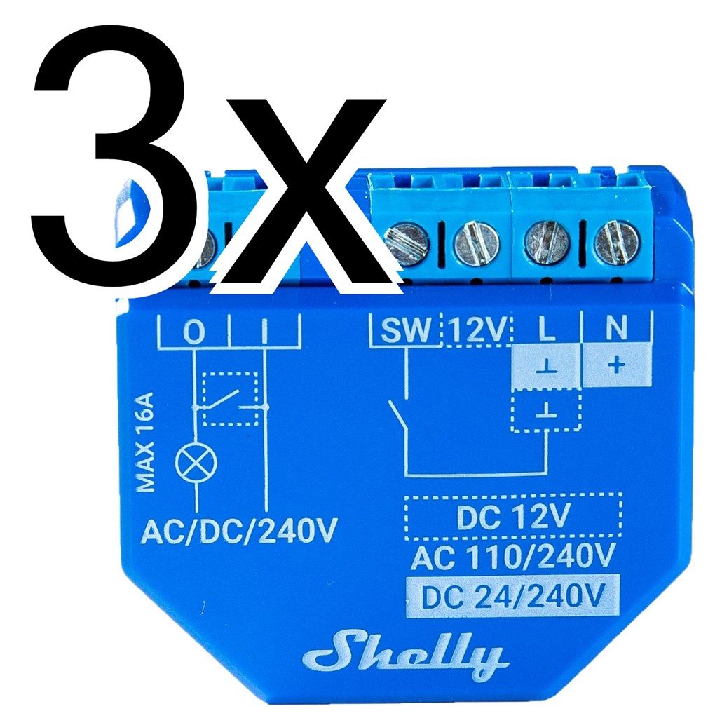 3 x Infälld strömbrytare, en kanal, WiFi, Bluetooth, mJS, Shelly Plus 1