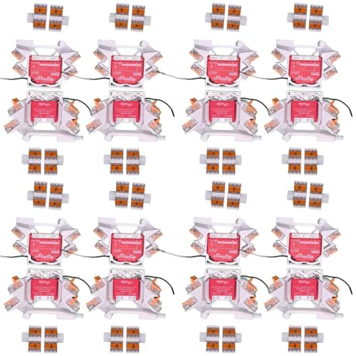 Printtastisch Shelly-DIN-skenhållare, 8 st. + 8 x 2 förlängningar för 29 Shelly-reläer: Plus 1, 1 Mini Gen3, Plus 1PM, 1PM Mini Gen3, Plus 2PM, 2.5, RGBW 2, PM, 2.5, Plus i4, Dimmer 2 och DIN-skena