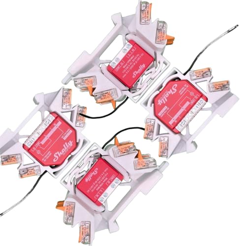 Printtastisch Shelly-DIN-skenhållare, 4 st., för 29 Shelly-reläer: Plus 1, 1 Mini Gen3, Plus 1PM, 1PM Mini Gen3, Plus 2PM, 2.5, RGBW 2, PM, 2.5, Plus i4, Dimmer 2 och DIN-skena